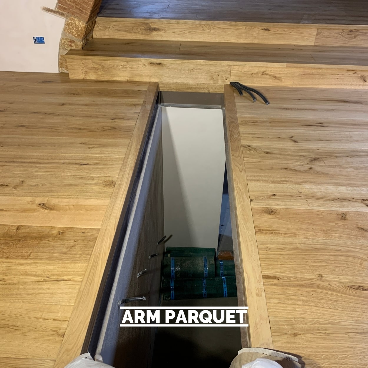 Come dicevamo il vero pregio di questo lavoro sono i piccoli dettagli. I gradini sono stati completamente rivestiti. I bordi e le cornici della scala che portano al piano sono stati rifiniti con torelli in Rovere fatti su misura.