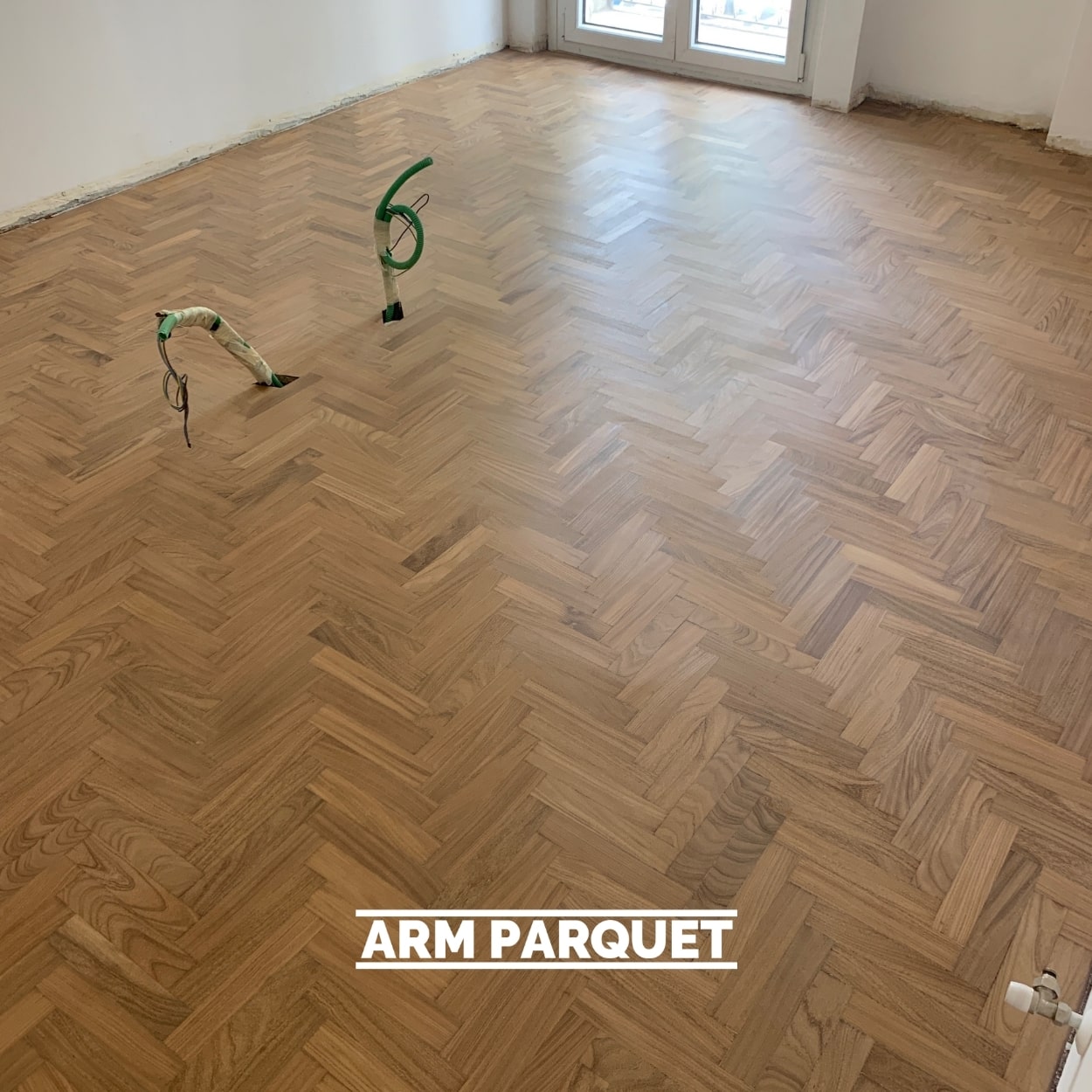 Abbiamo rilamato tutto il parquet, circa 100mq, togliendo tutti i segni ed i graffi presenti in superficie, per poi arrivare a dare un nuovo look con la nuova verniciatura.