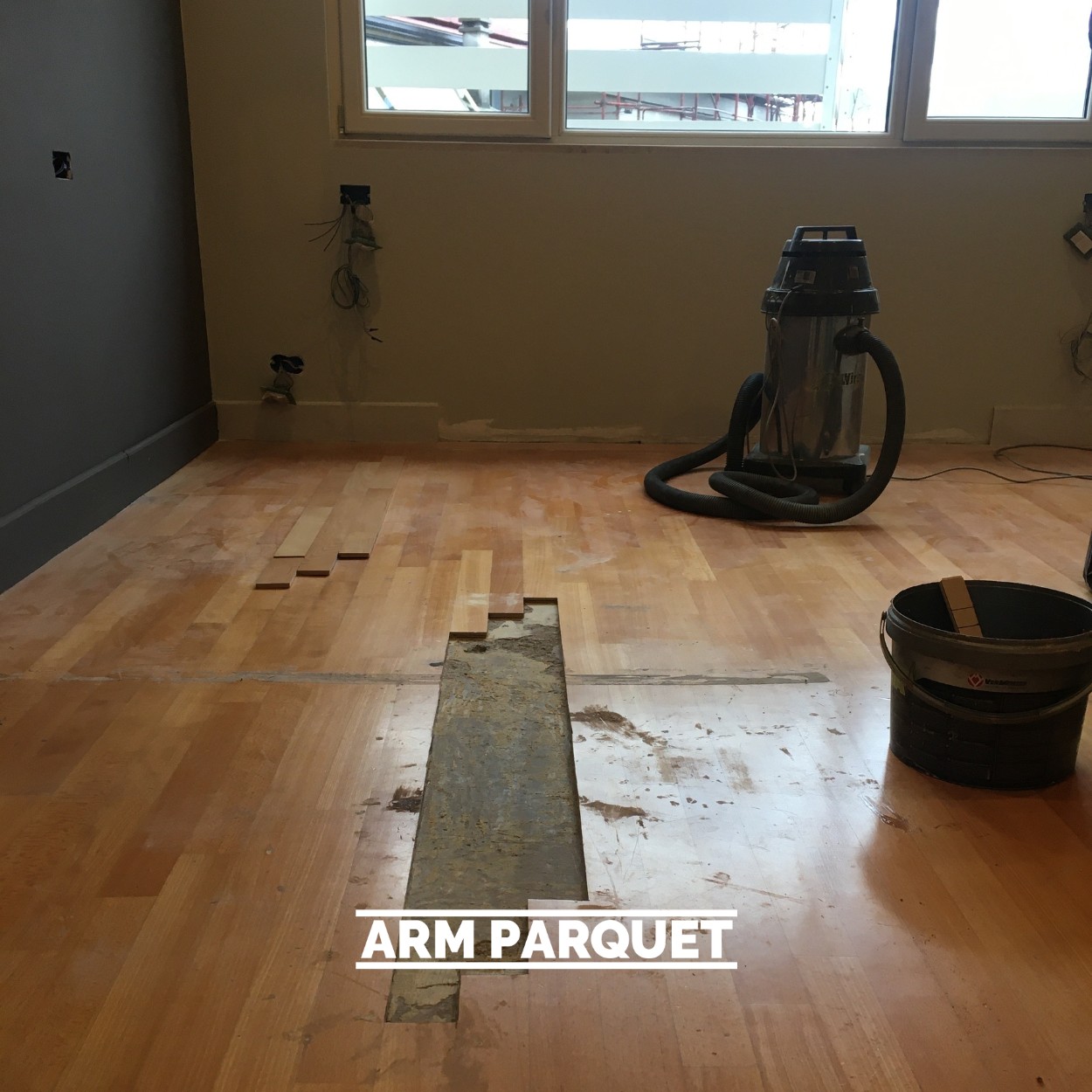 Il parquet inizialmente presentava dei danni normali da usura nel tempo e dei danni più seri.