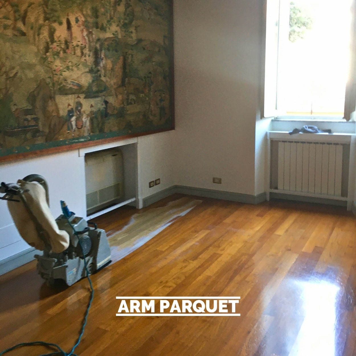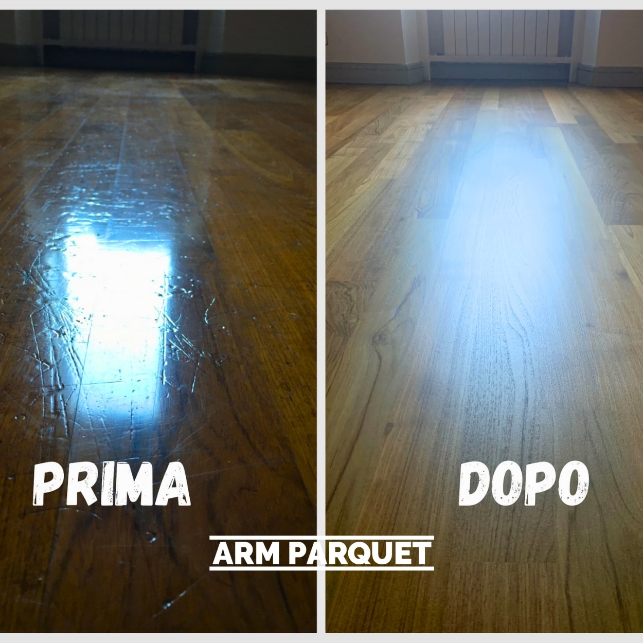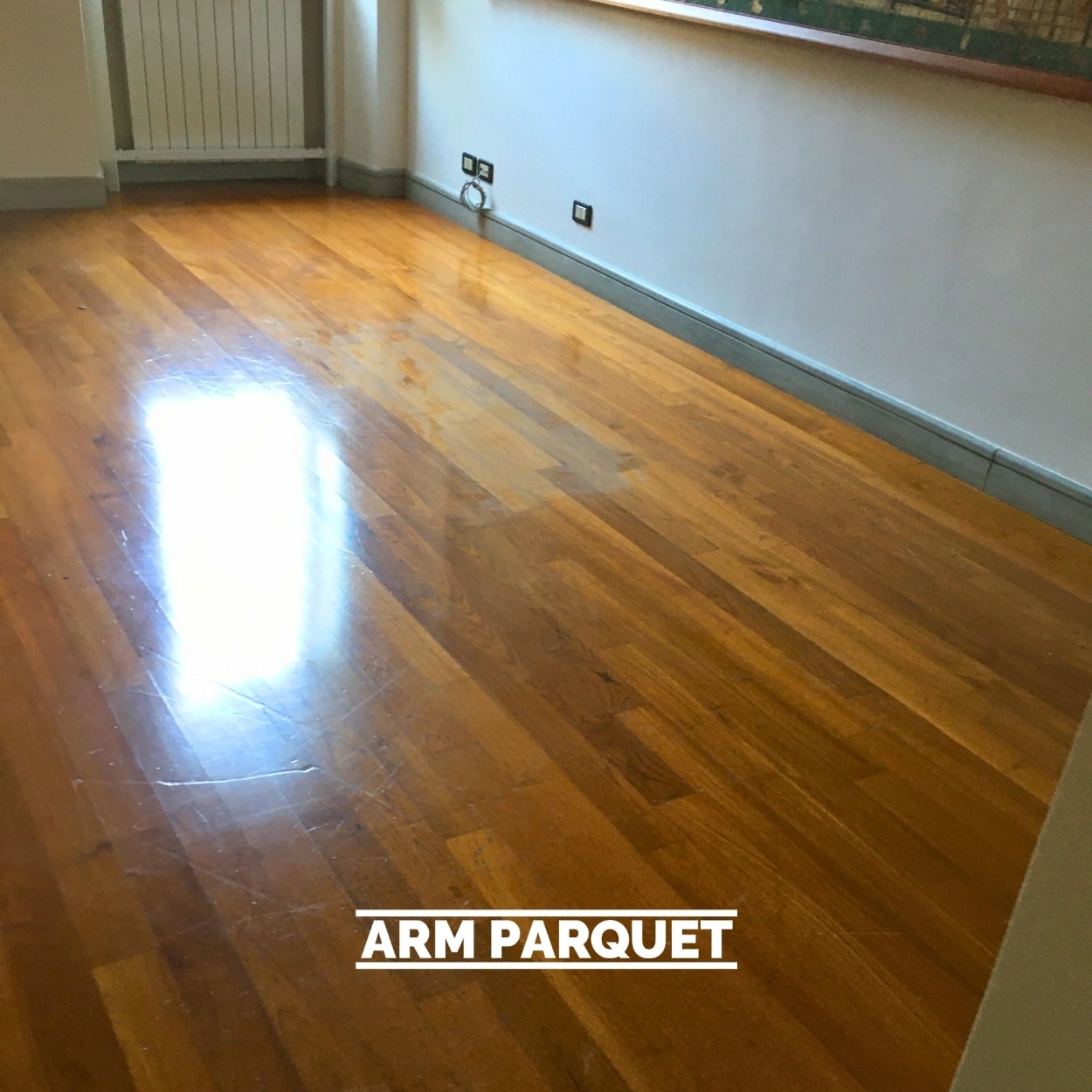 Abbiamo rilamato tutto il parquet, circa 100mq, togliendo tutti i segni ed i graffi presenti in superficie, per poi arrivare a dare un nuovo look con la nuova verniciatura.