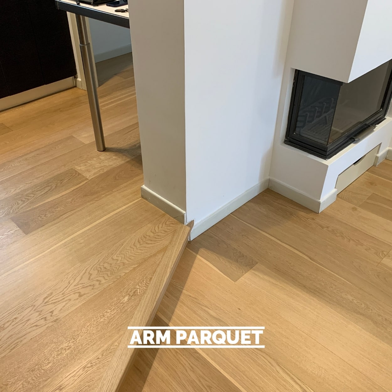 Per fare le cose fatte bene abbiamo anche fatto diverse riparazioni tra cui il montaggio di un nuovo torello in rovere sul gradino della cucina dove prima c’era un profilo in alluminio.